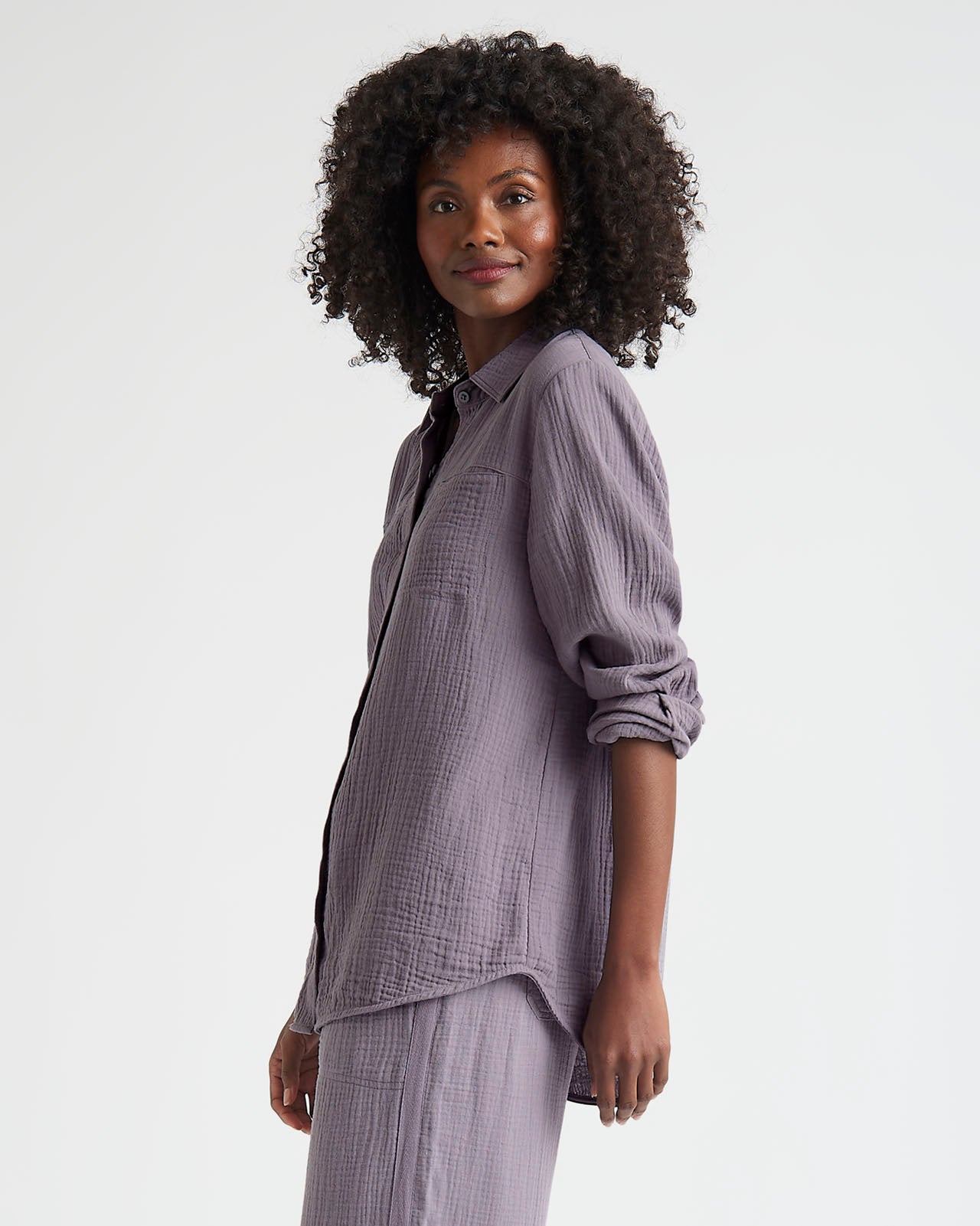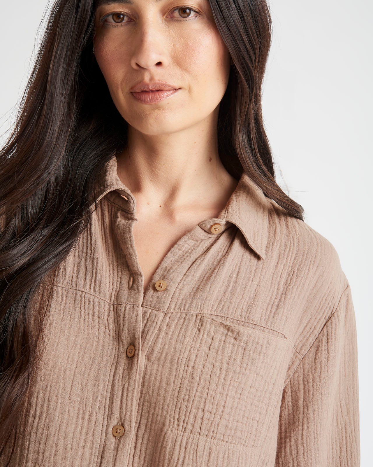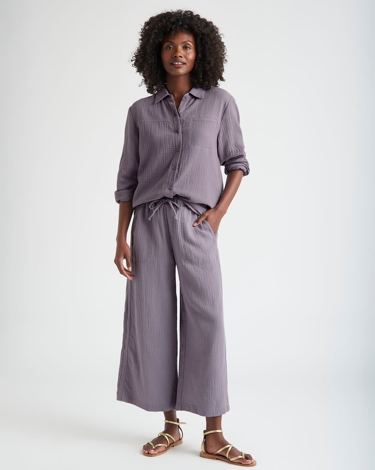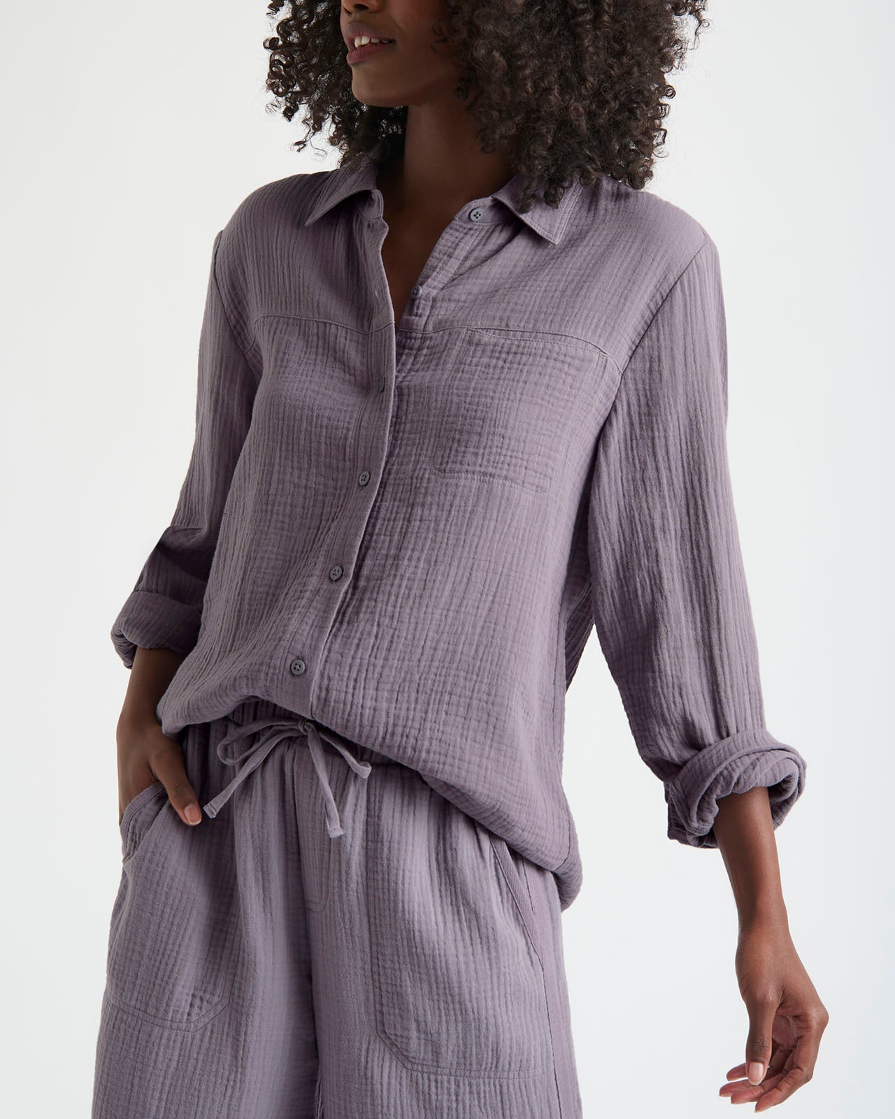 Soft and airy, our Kit Gauze Button Down Shirt is perfect for the warmer months. This lightweight shirt is made from a breathable cotton gauze in an easy fit silhouette for added comfort. We love to wear it open over a tank or tied in the front for added styling options. Pair with our Kit Gauze Palazzo Pant to create a matching set.