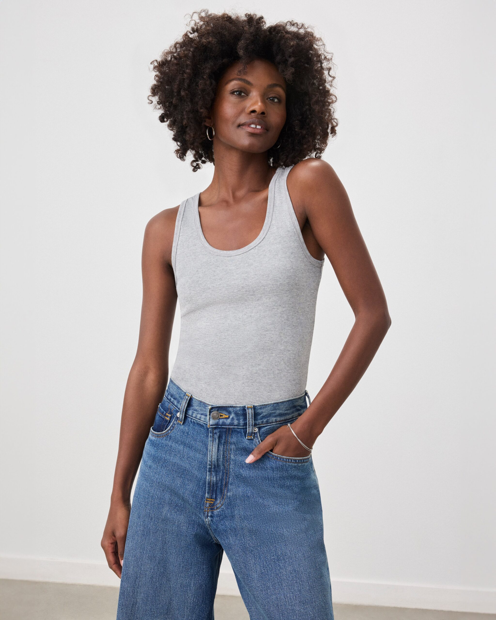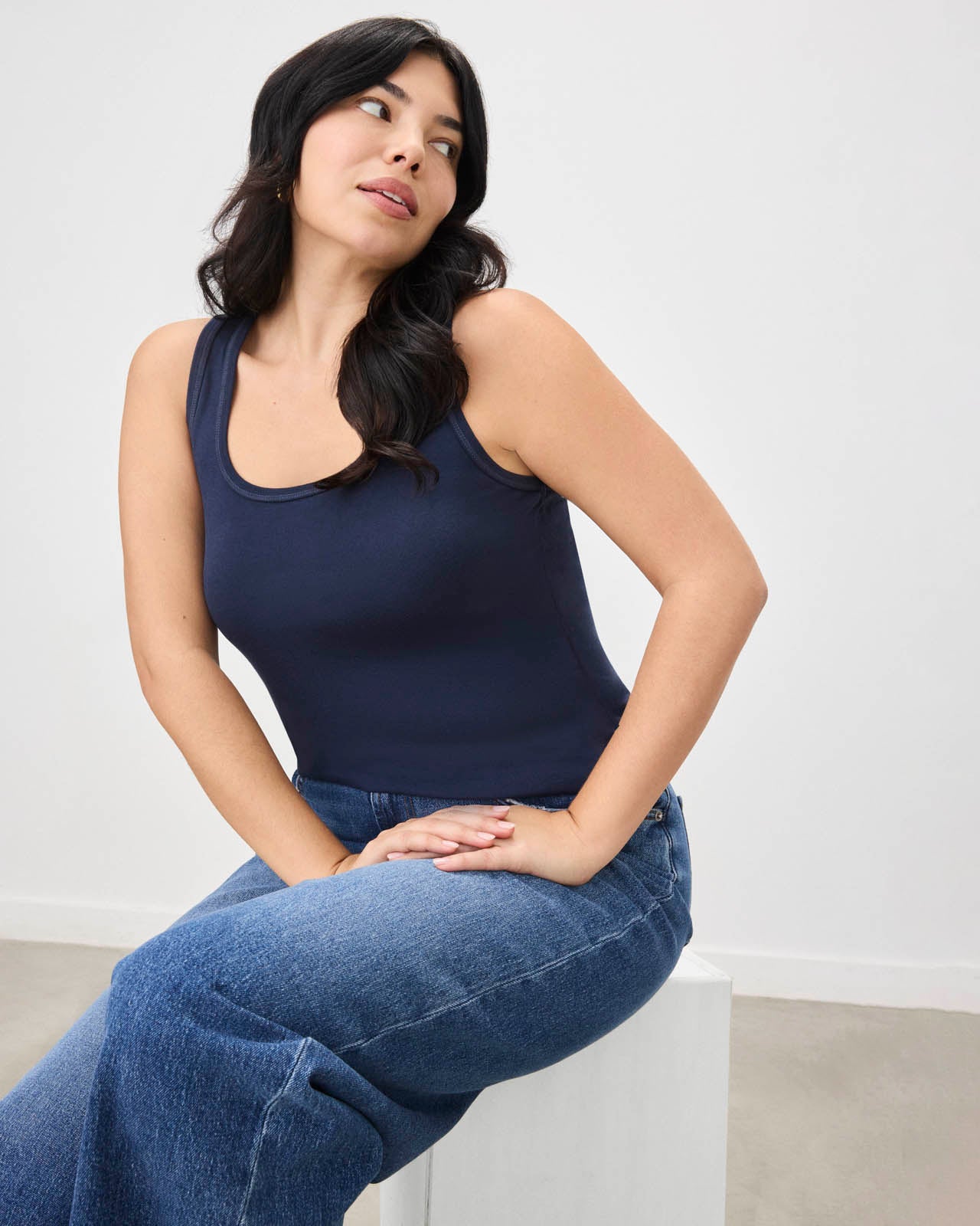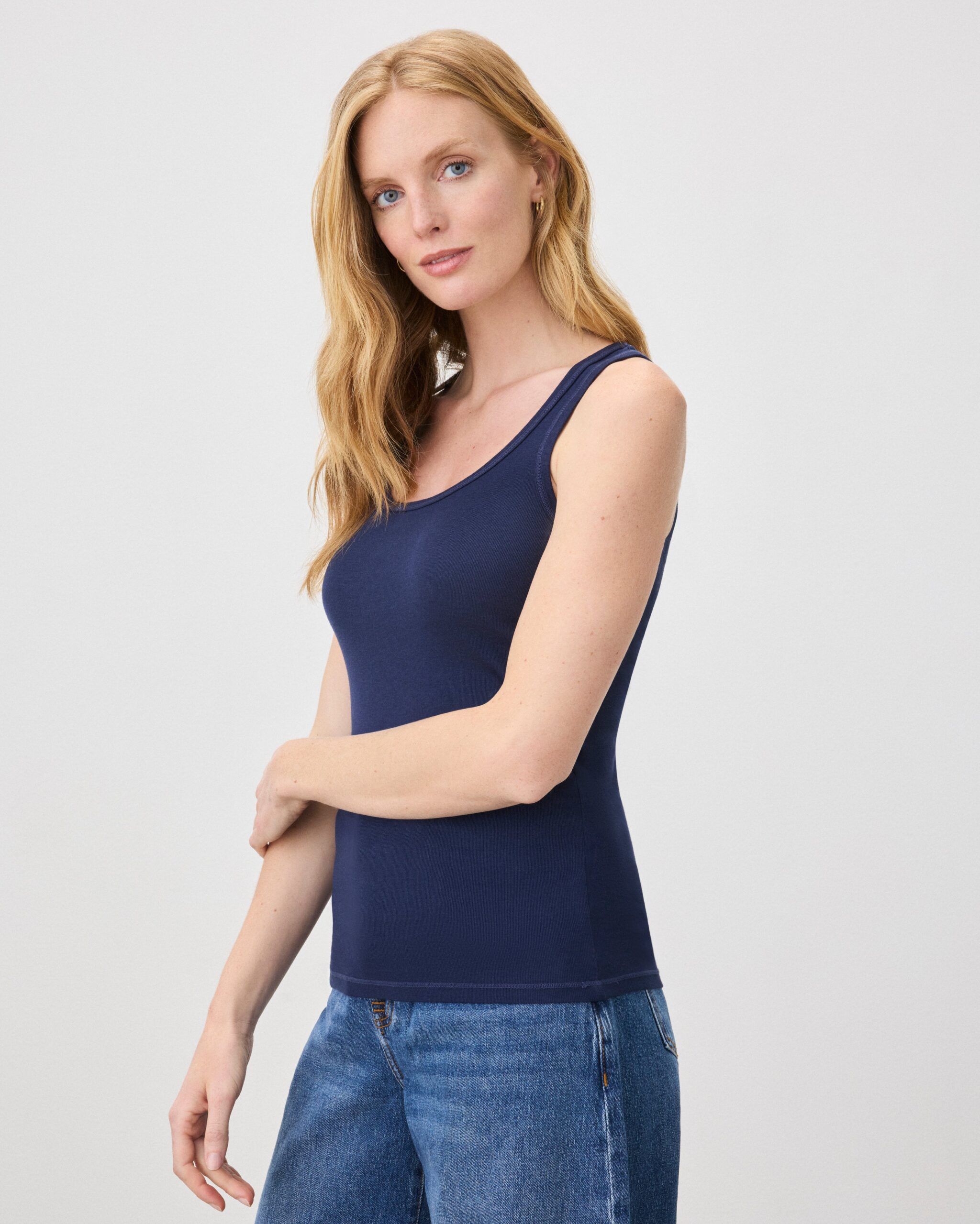 With its classic scoop neck and hugs-you-just-right fit, this hip-length women’s tank is the perfect layering piece with endless versatility. Crafted from our Classic Layering Knit—a finely ribbed and super soft fabric that stretches to move with your body but bounces back to good-as-new shape.
